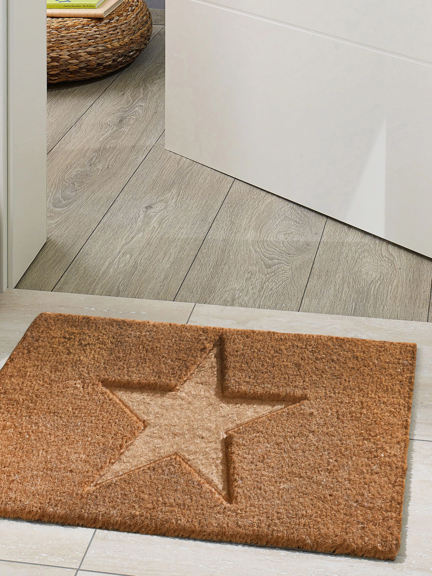 Ganz gleich in welcher Form, mit dieser fröhlichen Kokosfußmatte geht einem das Herz auf! Und praktisch ist das Naturprodukt mit dem tiefergeschnittenen Design sowieso – dank des robusten 17 mm Flors aus dichten Kokosfasern und rutschhemmender Gummierung. Ein Must-Have für alle, die unter einem guten Stern nach Hause kommen wollen. Größe ca. 40 x 70 cm.