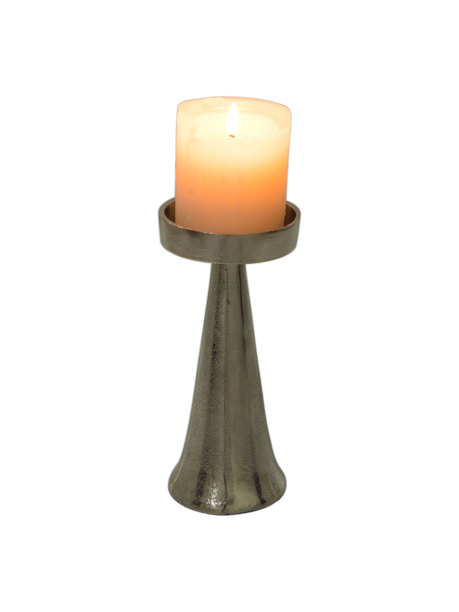 Edle und schlichte Kerzenleuchter für Stumpenkerzen, gut geeignet für die geschmackvolle Tischdekoration. Aus Aluminium gefertigt.