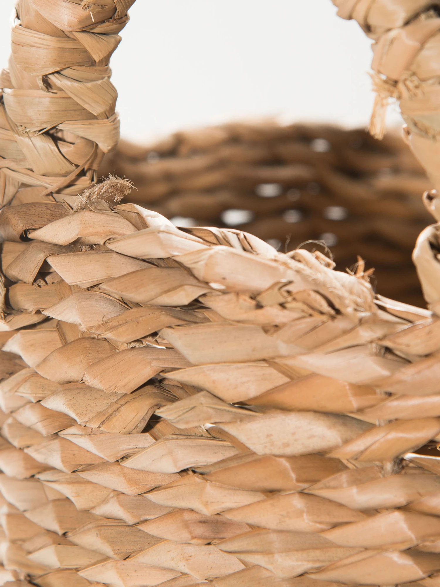 Natur pur. BASKET RUSH ist im unteren Bereich aus Mais und im oberen Bereich aus Binsen gefertigt. Professionell und stabil sind die Naturfaserstränge mit dem Hanffaden vernäht.