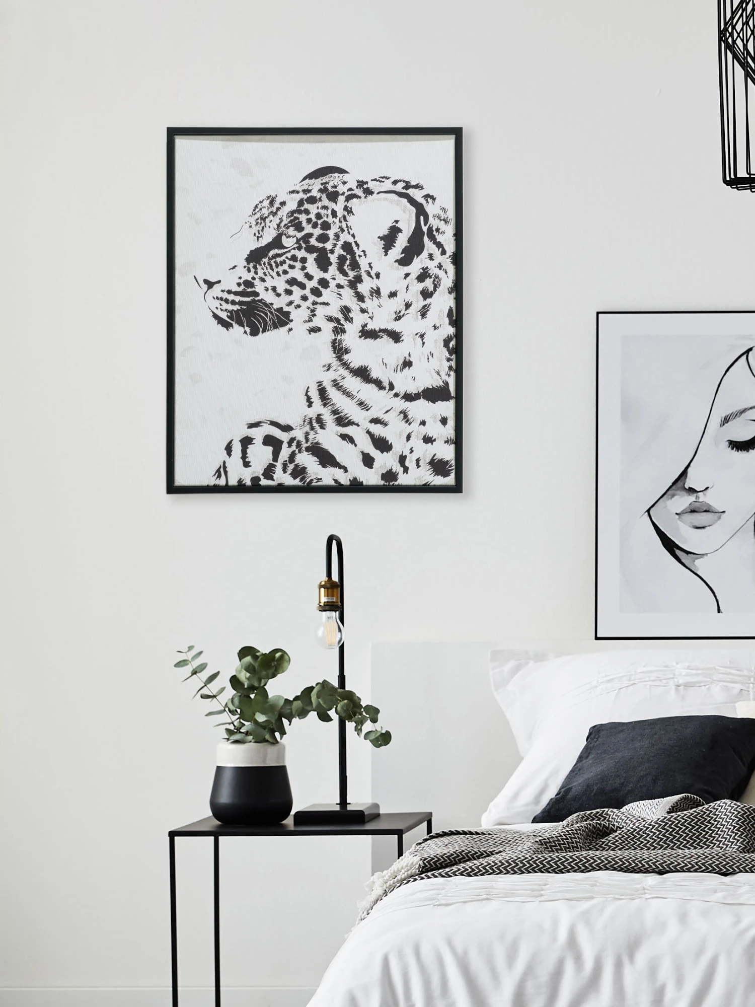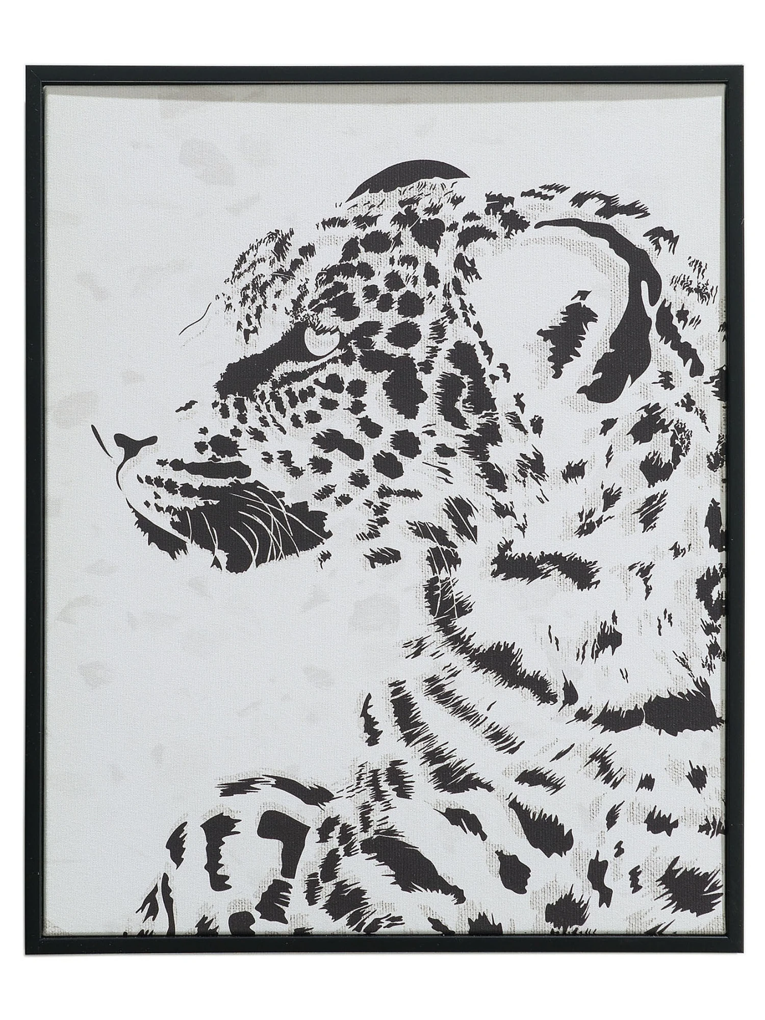 Edler Leopard als Schwarz-Weiß-Druck. Fertig gerahmt, inklusive Aufhängung. Ca. 3 cm stark.