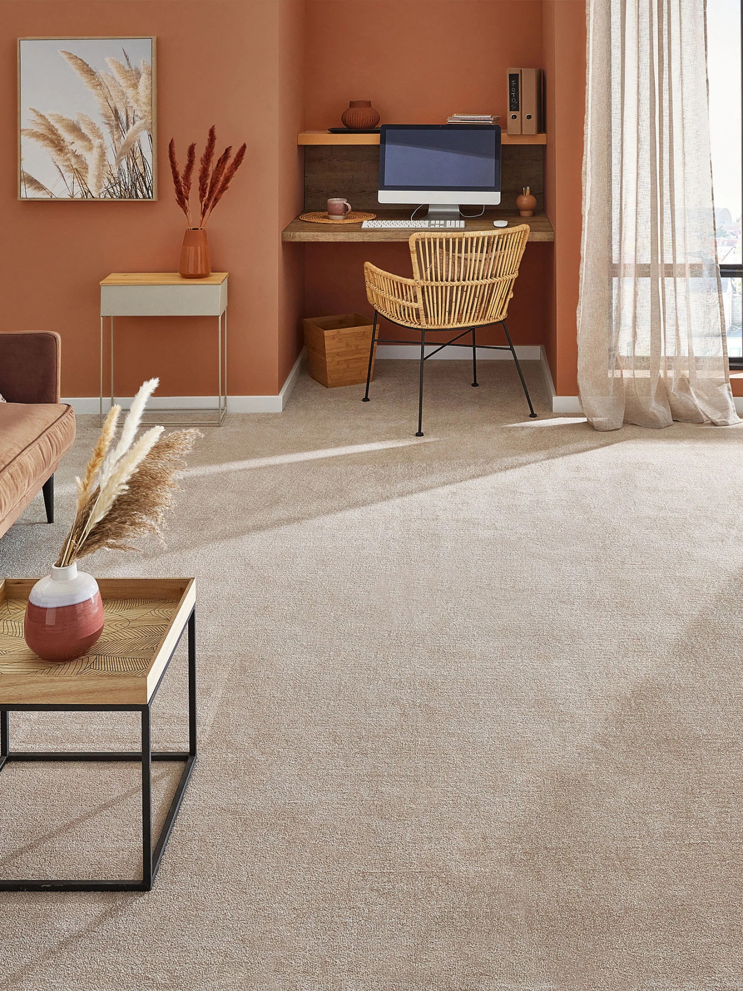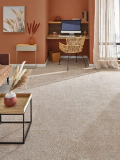 Mal ehrlich: wer braucht schon Möbel, wer braucht Stühle, Tische oder gar Betten, wenn ein Teppichboden wie EMOTION die Wohnung in eine derart einladende Landschaft verwandelt. Der leicht glänzende Flor aus Kräuselvelours lädt dazu ein, die Schuhe auszuziehen und ihn barfuß zu erleben – doch keine Sorge: das Material ist so strapazierfähig und pflegeleicht, das kann auch Schuhe gut vertragen. Und sogar Möbel, wenn Sie denn unbedingt darauf bestehen … Flormaterial: 100 % Polyamid.