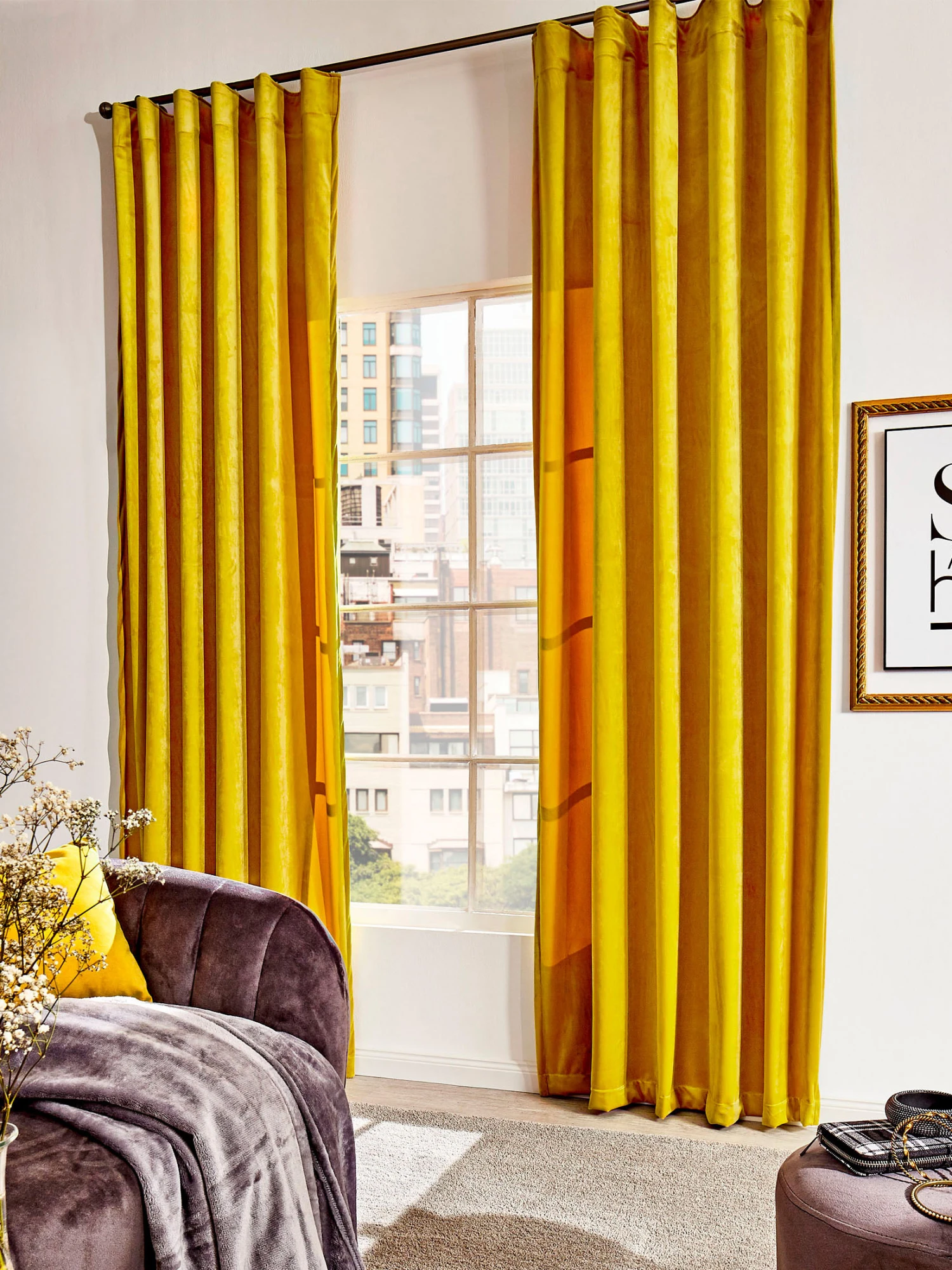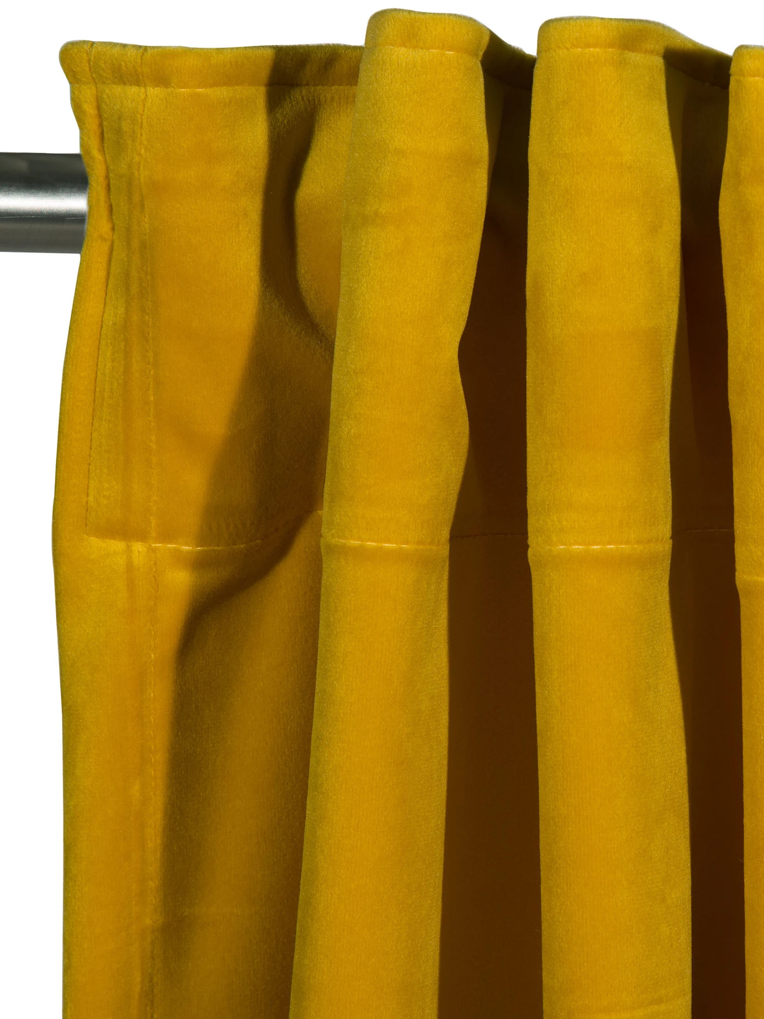 Fertigvorhang aus feinem Samt. Ausgestattet ist dieser blickdichte Vorhang mit verdeckten Schlaufen und einem Kombiband.