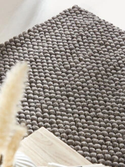 Bei jedem Schritt und Tritt den Moment genießen und von einem Sommer in Schweden träumen – dieser Naturteppich ist eine Einladung an alle Sinne. Seine organische Struktur und individuelle Farbgebung entsteht in Handarbeit, indem gewalkte Garne kugelförmig verdreht und verwebt werden. So entsteht eine einzigartige plastische Oberfläche, die man unmittelbar berühren, begehen, betasten will. Tut man dies, überrascht die Harmonie aus weicher, wärmender